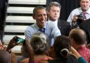 Ieri c’è stato il secondo dibattito tra Barack Obama e Mitt Romney nella campagna elettorale alle presidenziali del 6 novembre prossimo, in cui il presidente in carica sembra aver avuto la meglio sul proprio rivale, a detta della gran parte degli osservatori e degli analisti. E oggi, in un comizio tenuto a Cedar Rapids, nello stato dell’Iowa, Obama è apparso altrettanto aggressivo e lanciato: ha riproposto la risposta di Romney sul tema del diritto delle donne di essere pagate quanto gli uomini, a parità di incarico, rimarcando la goffaggine del suo avversario (che aveva raccontato di “raccoglitori pieni di donne”, espressione già diventata un tormentone) e dicendo che lui non ha bisogno di rivolgersi a gruppi di associazioni femminili per aiutarlo a trovare donne «di talento, formidabili e giovani».