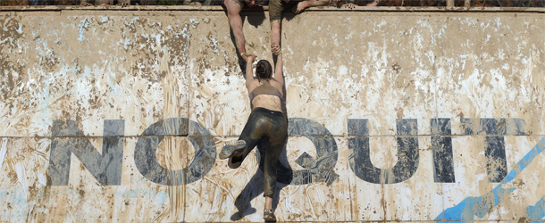 ENGLISHTOWN, NJ – OCTOBER 21: Participants compete at the Everest obstacle in the Tough Mudder event at Raceway Park on October 21, 2012 in Englishtown, New Jersey. (Photo by Bruce Bennett/Getty Images)