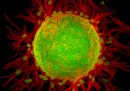 La microfotografia è la ripresa fotografica di soggetti non visibili a occhio nudo: si ottiene con una fotocamera collegata a un microscopio ottico o elettronico. Nel loro lavoro, Peters e Taylor hanno catturato l’immagine della barriera emato-encefalica, che è formata dalle cellule endoteliali che compongono i vasi del sistema nervoso centrale, con la funzione di proteggere il tessuto cerebrale dagli elementi nocivi presenti nel sangue. I due scienziati hanno usato delle proteine fluorescenti che hanno permesso di vedere le cellule endoteliali e la barriera emato-encefalica dell’embrione di pesce zebra mentre si sviluppava in tempo reale: le singole immagini sono state colorate per illustrarne la profondità e osservate con un microscopio elettronico in 3D. C’è anche un italiano nella classifica dei primi venti di quest’anno: Andrea Genre, dell’Università di Torino, con la foto di una sezione di una coccinella.