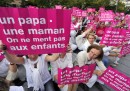 Martedì scorso l’associazione francese “Alliance Vita” ha organizzato 75 manifestazioni in altrettante città del paese contro il progetto di legge su matrimonio e adozione per persone dello stesso sesso voluto dal presidente François Hollande, che verrà presentato in Consiglio dei ministri il 7 novembre. Il loro slogan era: “Un padre e una madre: non si mente ai bambini”. L’iniziativa è diventata però molto famosa anche fuori dalla Francia quando, a Marsiglia, due giovani donne si sono baciate di fronte ai manifestanti riuniti: la foto di quel bacio, scattata da Gerard Julien, fotografo di Agence France Presse, è circolata molto sui social network e ed è stata ripresa da molti siti internet e dai giornali, non solo francesi.