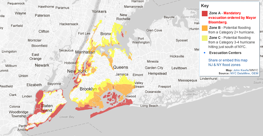 16:12 – In rosso le zone di New York per le quali è stata emessa l’ordinanza obbligatoria di evacuazione. Riguarda anche la zona di Manhattan.