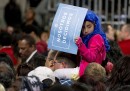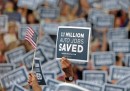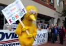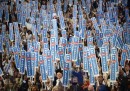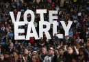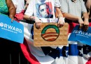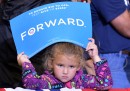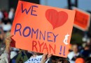 Insieme ai palloncini e ai manifesti, i cartelli sono tra gli oggetti che in assoluto più fanno campagna-elettorale-americana. Sono presenti in qualsiasi evento politico, sia nelle versioni “ufficiali” che in quelle personalizzate di singoli elettori e militanti, e hanno un ruolo e un protagonismo simile a quello che in Italia, in simili contesti, hanno le bandiere, assenti negli Stati Uniti: dicono qualcosa di chi le porta, delle sue idee, di come si definisce, di quello che vuole. In Italia qualcuno ha cominciato a importare l’usanza – Veltroni nel 2008, Renzi nel 2012 – ma non si tratta ancora del fenomeno naturale e spontaneo al quale si assiste negli Stati Uniti, dove capita che alcuni circolino molto perché particolarmente divertenti o scandalosi, o perché creano dei piccoli casi: è il caso del cartello mostrato nell’ultima delle foto che seguono, della campagna elettorale di Mitt Romney. Riporta il motto della squadra di football dei Panthers, che è al centro della serie televisiva Friday Night Lights. Il regista della serie si è molto arrabbiato.