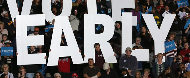 YOUNGSTOWN, OH – OCTOBER 29: Democratic supporters attend a campaign rally with former U.S. President Bill Clinton and U.S. Vice President Joe Biden on October 29, 2012 in Youngstown, Ohio. President Obama had planned to attend the event but cancelled to return to the White House to monitor developments concerning Hurricane Sandy. Political analysts have predicted Ohio voters could potentially decide the upcoming Presidential election. (Photo by John Moore/Getty Images)