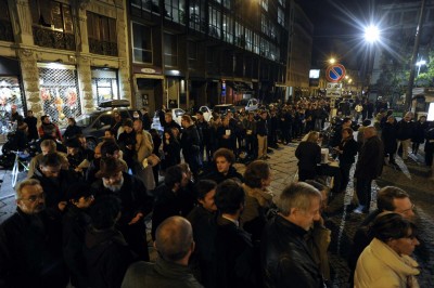 10 foto dal teatro Dal Verme, compreso l'abbraccio con Pisapia