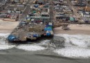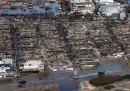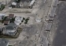 Passata la tempesta, la gravità e l’effettiva estensione dei danni causati da Sandy lungo la costa orientale degli Stati Uniti sono diventate evidenti a tutti in seguito ai voli di ricognizione realizzati nelle aree più colpite dalla perturbazione. Le fotografie scattate a bordo degli elicotteri e degli aerei mostrano intere porzioni di costa devastate, con case distrutte e in molti casi spostate di decine di metri dal luogo in cui erano state costruire. Nel New Jersey e nello stato di New York, il vento molto forte e la marea hanno portato sabbia, macerie e altri detriti verso l’entroterra. Molte strade non sono ancora percorribili e continueranno a non esserlo per giorni. Centinaia di famiglie sono rimaste senza una casa e milioni di persone non hanno ancora la corrente elettrica. Nel Queens oltre cento case sono andate a fuoco nelle prime ore di martedì scorso. Duecento vigili del fuoco hanno lavorato per ore per contenere l’incendio, facendo anche i conti con i rischi del vento molto forte che soffiava sulla costa. Non ci sono ancora dati definitivi, ma si stima che la tempesta abbia causato la morte di più di 60 persone.
