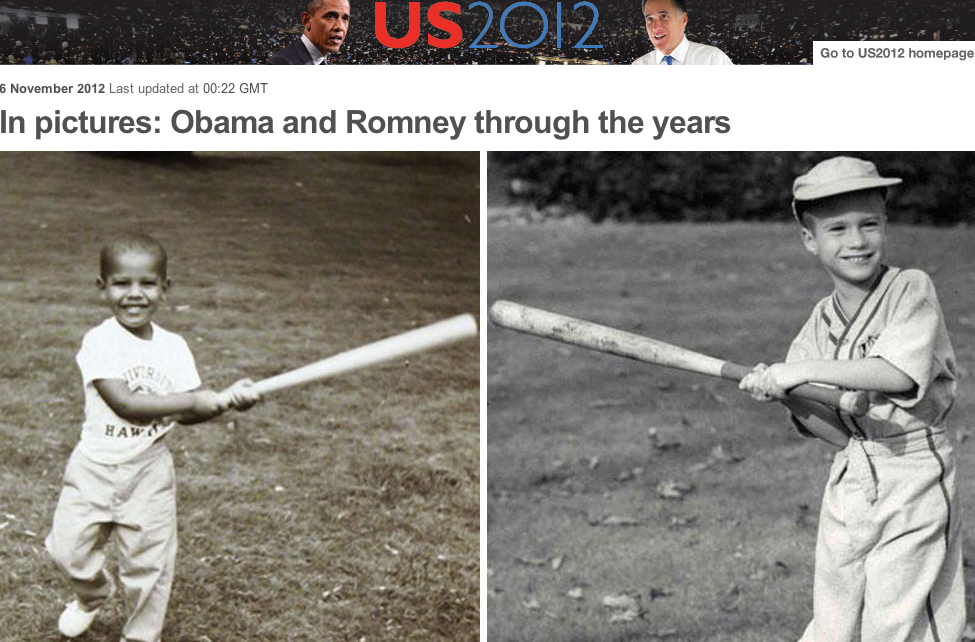 17.24 – La BBC ha raccolto una serie di foto di Obama e Romney messi a confronto, dalla passione per il baseball, le foto del matrimonio, fino ai giorni della campagna elettorale.
