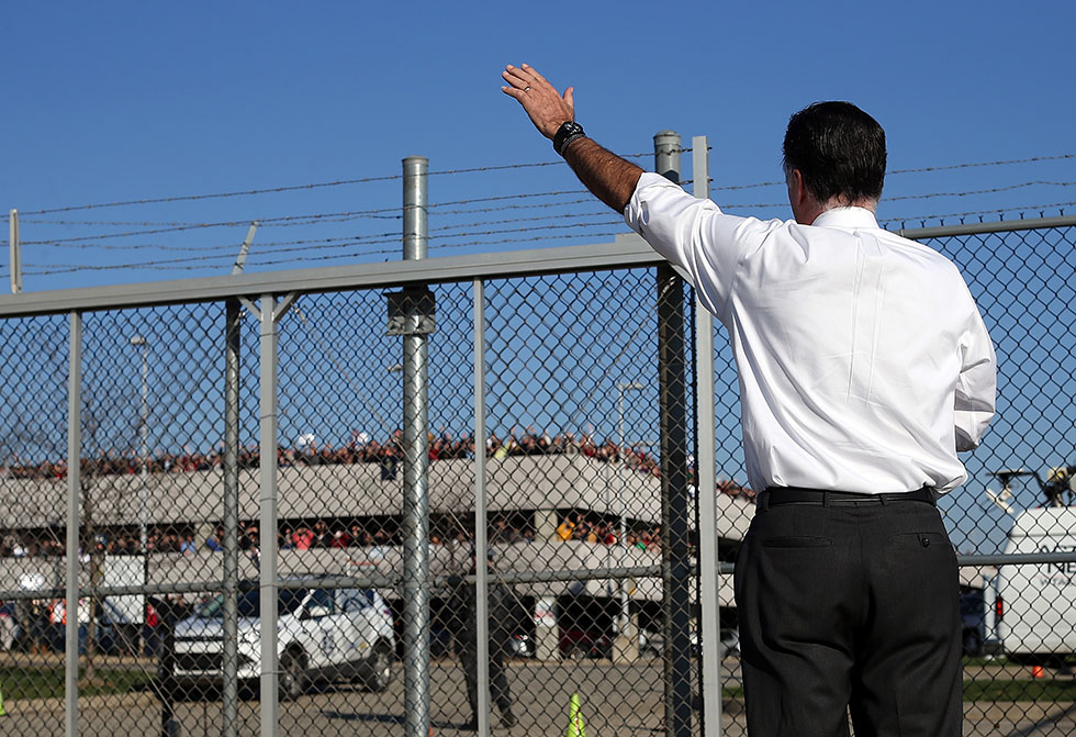 21.42 Circa trecento persone hanno accolto Mitt Romney all’aeroporto di Pittsburgh, in Pennsylvania.