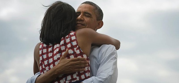 La foto è stata scattata in Iowa, il 15 agosto scorso, alla fine di un evento di campagna elettorale. L’evento concludeva un viaggio elettorale di tre giorni in autobus nel Midwest: un momento particolarmente faticoso ma in cui, stando ai sondaggi, le cose andavano a gonfie vele e Obama aveva molte probabilità di essere rieletto. Gli Obama inoltre erano apparsi particolarmente affettuosi (il giorno dopo a Chicago venne inaugurata una targa che segnalava il posto in cui Obama e Michelle si erano baciati per la prima volta, davanti a una gelateria che ora non c’è più). Forbes ha lodato la scelta della foto per annunciare la rielezione, che dopo quasi tre mesi è stata ricontestualizzata e ha assunto un nuovo significato. Lo staff di Obama avrebbe potuto scattare una foto dei festeggiamenti di quella stessa notte – cosa che ha comunque fatto – ma ha preferito un’immagine più naturale in cui Obama e la moglie appaiono come una coppia normale e affiatata. Forbes sottolinea anche che la foto è in piena luce: «Il simbolismo qui è ovvio: non ci sono giorni bui all’orizzonte».