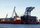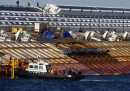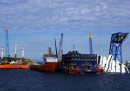 Continuano le operazioni di rimozione: il relitto è stato stabilizzato e ora inizia la costruzione del falso fondale su cui poggerà la nave