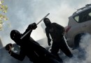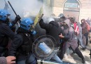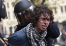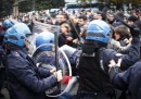 (Il video di un poliziotto che prende un manifestante a manganellate in faccia, a Roma)