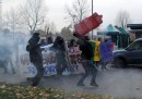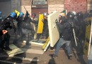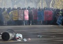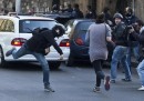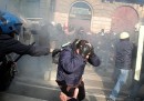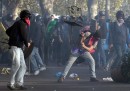 A Roma durante i cortei si sono verificati diversi atti di vandalismo, da parte di alcuni violenti. Negli scontri con alcuni manifestanti sono rimasti feriti 16 appartenenti alle forze dell’ordine, che hanno risposto con cariche per disperdere alcuni gruppi sul lungotevere. Diciotto persone sono stati accompagnati in diversi uffici di polizia per accertamenti e un centinaio di persone sono state identificate nel corteo. Ci sono stati anche episodi di violenza da parte delle forze dell’ordine, almeno a giudicare da questo video che sta circolando molto online in cui un manifestante viene preso a manganellate sul viso. Si stima che le persone ferite siano state complessivamente una trentina.