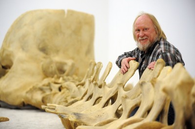 Dal 3 novembre il Museo di Storia Naturale di Muenster, nel Nord Reno Vestfalia, ospita una mostra dedicata ai grandi animali marini intitolata “I giganti dell’oceano”. La mostra espone numerosi modelli a grandezza naturale di diversi cetacei, il cuore di una balenottera azzurra, gli scheletri originali delle balene più grandi e più piccole del mondo oltre a una serie di video realizzati da National Geographic Deutschland. Le foto mostrano i due curatori Markus Ranft e Werner Beckmann mentre assemblano lo scheletro di un capodoglio, il più grande animale vivente munito di denti (e il protagonista del romanzo di Herman Melville Moby Dick) che si era arenato nel 2011 nei pressi dell’isola di Pellworm, nel Mare del Nord. L’intero scheletro misura quasi 15 metri mentre la sola testa, lunga 4,5 metri, pesa circa 700 chili.