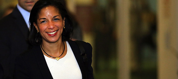 NEW YORK, NY – NOVEMBER 29: U.N. Ambassador Susan Rice leaves following a General Assembly vote granting Palestinians non-member observer status on November 29, 2012 in New York City. The resolution was approved by the 193-member body by a vote of 138-9, with 41 abstentions. The United States, Israel, Canada and a handful of others voted against Thursday’s historic UN resolution. (Photo by Spencer Platt/Getty Images)