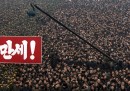 Centinaia di migliaia di persone si sono radunate a Pyongyang per celebrare il lancio del razzo: tutto molto ordinatamente