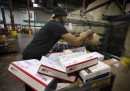 Il Servizio Postale degli Stati Uniti (USPS) ha avuto lunedì la giornata più impegnativa dell’anno, che cade naturalmente nell’ultima settimana prima di Natale: si stima che siano stati spediti quasi 658 milioni di pezzi, tra cartoline, lettere e pacchi, quasi il 25 per cento di spedizioni in più della media giornaliera. Le foto mostrano i lavoratori del centro di logistica e distribuzione dell’USPS di Chicago.