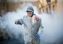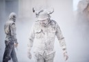 Le foto del finto colpo di Stato con battaglia di uova, farina e fumogeni colorati che si svolge ogni 28 dicembre a Ibi