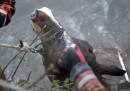 Oggi a Roma i Vigili del Fuoco hanno salvato un cavallo che era finito nel fiume Aniene, affluente di sinistra del Tevere, all’altezza di Montesacro. Queste foto sono state scattate da Alfredo Falcone per LaPresse.