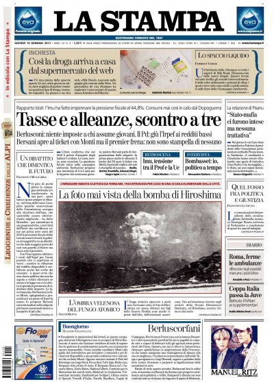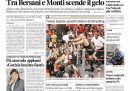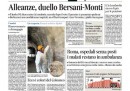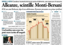 Quasi tutti i giornali di oggi aprono con la proposta di Bersani a Monti per un’alleanza dopo il voto, respinta dal Presidente del Consiglio, che considera “prematuro” parlarne adesso. Il Giornale e Libero titolano invece sulla mossa elettorale di Berlusconi, che propone di abolire le imposte sul lavoro per 5 anni per chi assume nuovi lavoratori. I quotidiani sportivi si occupano della vittoria della Juventus, che batte il Milan ai tempi supplementari e si qualifica per le semifinali di Coppa Italia.