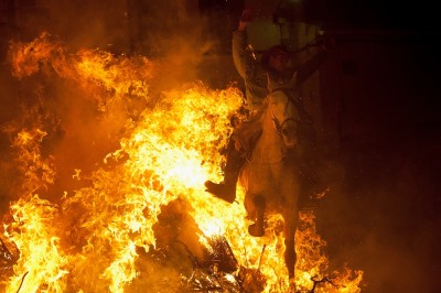 È una festa vecchia 500 anni in cui uomini a cavallo fanno saltare gli animali su falò accesi nelle strade della città per purificarli