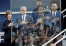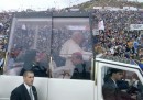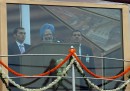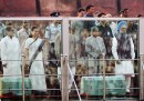 La settimana scorsa Silvio Berlusconi ha annunciato che durante questa campagna elettorale non avrebbe tenuto comizi in piazza per via di timori sulla sicurezza e minacce ricevute. Qualche giorno fa abbiamo raccontato, anche con delle foto, la storia di Tahir-ul-Qadri, celebre giurista pakistano che si è messo alla testa di una vasta protesta popolare contro la corruzione, e durante i suoi affollati comizi di piazza è protetto da un vetro antiproiettile. La preoccupazione di Berlusconi è forse un po’ eccessiva, visto che sia il Papa che Barack Obama che altri personaggi di grande importanza continuano a tenere comizi in pubblico con i dovuti accorgimenti, ma la combinazione di queste due cose ci ha fatto rovistare negli archivi delle agenzie fotografiche alla ricerca di altri personaggi in simili situazioni. Hanno in comune che sono tutti famosi e potenti, in tutto il mondo o solo in un pezzetto, e hanno tutti ragione di pensare che qualcuno potrebbe volerli uccidere: quindi, quando si fanno vedere in giro, si trovano spesso – non sempre – a guardare il mondo e le cose davanti a sé attraverso un vetro blindato. Nel caso delle macchine che trasportano i papi, per esempio, il vetro antiproiettile venne aggiunto dopo che nel 1981 un uomo di nazionalità turca, Ali Agca, sparò due volte a Karol Wojtyla.