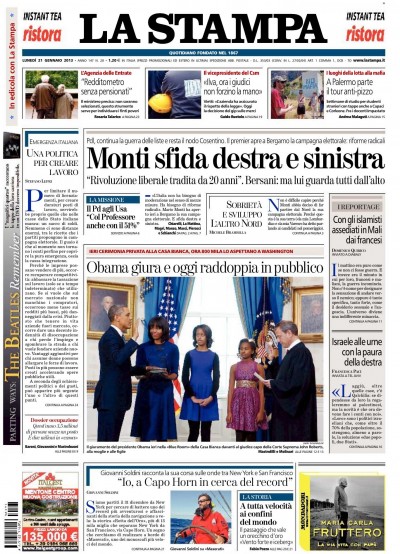 Le liste pulite del PDL, il giuramento di Obama, e i pensionati esclusi dal redditometro