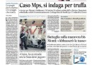 La maggior parte dei giornali di oggi apre sempre con le indagini sul Monte dei Paschi di Siena, che vedrebbero indagati per truffa gli ex manager della banca. La Stampa e il Manifesto si occupano invece della sentenza della Corte di Cassazione che conferma che il DC9 di Ustica fu abbattuto da un missile e condanna lo stato a risarcire i parenti delle vittime, mentre gli altri giornali rimangono sulla campagna elettorale, con la manovra ipotizzata da Monti per dopo le elezioni in apertura sull’Unità, la sua promessa di ridurre le tasse sul Secolo XIX e Europa, e gli effetti della vicenda Monte dei Paschi sulle intenzioni di voto sul Giornale. I quotidiani sportivi titolano sulle squalifiche alla Juventus per le proteste contro l’arbitro al termine della partita di sabato.