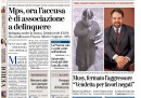 I giornali di oggi dedicano l’apertura a notizie diverse: molti seguono ancora l’inchiesta sul Monte dei Paschi di Siena, con la nuova accusa di associazione a delinquere per il management della banca, mentre l’Unità e Europa si occupano della polemica fra Ingroia e Boccassini sull’eredità di Falcone e Borsellino, Libero e il Giornale seguono l’inchiesta sulle spese dei gruppi consiliari alla regione Lombardia, concentrandosi sui rimborsi per la Nutella di un consigliere PD, il Mattino titola sul caos del trasporto pubblico a Napoli, e il Manifesto chiede una tregua nelle liti elettorali a sinistra fra Vendola e Ingroia. I quotidiani sportivi seguono gli affari dell’ultimo giorno del calciomercato di gennaio, che chiude stasera.