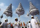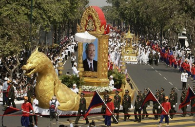 Sihanouk è morto il 15 ottobre scorso a Pechino, dove si trovava dal gennaio 2012 per ricevere cure mediche. Più di un milione di persone hanno assistito alla cerimonia con cui il corpo è stato trasportato dall’aeroporto della capitale al palazzo reale. La camera ardente dove era esposto il suo corpo imbalsamato è rimasta aperta per tre mesi. In questo periodo sono state numerose le cerimonie e le preghiere per il monarca defunto, considerato uno dei simboli più importanti dell’unità del paese.