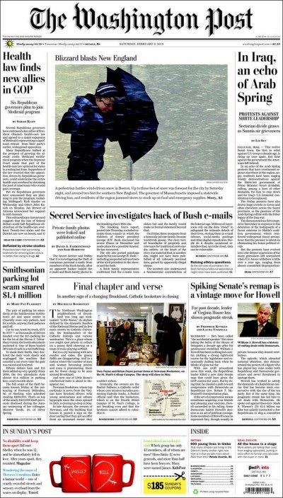 I maggiori quotidiani americani dedicano la prima pagina al "blizzard" che sta colpendo la costa Est