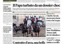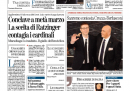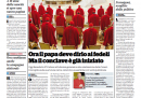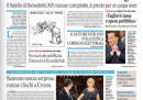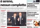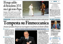 La maggior parte dei giornali di oggi apre con l’arresto per corruzione del presidente di Finmeccanica Orsi, notizia associata da qualche giornale alla chiusura delle indagini sulla sanità in Lombardia con la accusa nei confronti di Formigoni di corruzione e associazione a delinquere. Il Corriere della Sera, Avvenire e Europa rimangono invece sull’annuncio delle dimissioni di Papa Benedetto XVI e sulle prospettive in vista del prossimo conclave, e il Mattino titola su un’intervista a Bersani, che annuncia di non voler cercare un’intesa con Grillo dopo le elezioni. I quotidiani sportivi si occupano della vittoria della Juventus a Glasgow contro il Celtic nell’andata degli ottavi di finale di Champions League.