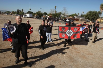 Intorno alle quattro del mattino del primo maggio 2011, il 32enne Jeffrey Hall dormiva su un divano nel salotto della sua abitazione a Riverside, in California. Hall era un omone: un idraulico impiegato in lavori saltuari, alto più di un metro e novanta e con un teschio e una croce tatuati sopra la nuca, sul cranio rasato. Nella stanza, sopra il divano, erano appese con i chiodi due bandiere: una dello Stato della California – con un orso bruno su sfondo bianco, una stella rossa e la scritta “California Republic” – e una del National Socialist Movement, l’organizzazione neonazista a cui aveva aderito poco più di due anni prima e di cui aveva la carica di “Direttore Regionale per gli Stati Sudoccidentali”.