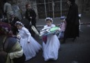Le foto raccontano i festeggiamenti del Purim in varie comunità ultraortodosse: a Mea Shearim, un quartiere di Gerusalemme, e Bnei Brak e Beit Shemesh, cittadine abitate quasi esclusivamente da haredim, gli ebrei ultraortodossi, e nella colonia israeliana di Havat Gilad, in Cisgiordania.
