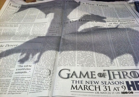 La pubblicità di Game of Thrones sul New York Times