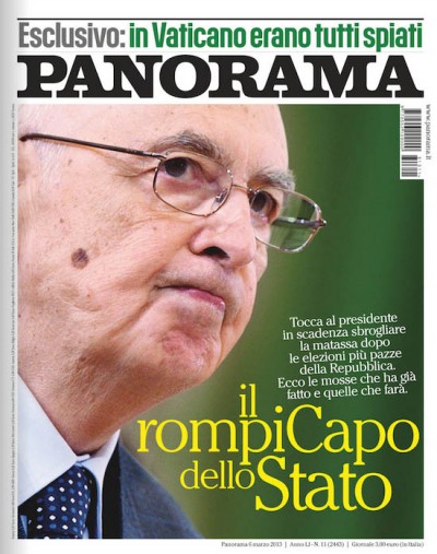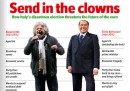 Questa settimana, le elezioni in Italia ottengono le prime pagine dei principali settimanali italiani e anche quelle di qualche newsmagazine internazionale. Panorama le chiama «le elezioni più pazze della Repubblica» e sotto una foto del presidente della Repubblica titola: «Il rompicapo del Capo dello Stato». L’Espresso si concentra sul successo di Grillo e sulla sconfitta di Bersani, mettendo in copertina un fotomontaggio dei due (faccia di Bersani, capelli di Grillo) e il titolo «Ingrillato». Beppe Grillo anche su Internazionale e, insieme a Berlusconi, sulla copertina dell’Economist che titola: «Fate entrare i clown!» (e che richiama una canzone: quale?). Sempre all’estero, TIME dedica la copertina a Oscar Pistorius e a un’inchiesta sulla cultura della violenza in Sudafrica. Infine, se capite un po’ il tedesco, potete farvi una risata a denti stretti sulla copertina del magazine della Süddeutsche Zeitung: che titola – sotto un esclamazione colorita, qualcosa come “Oh merda” – «Perché abbiamo perso da tempo la guerra contro i piccioni».