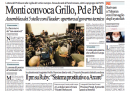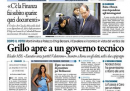 Le trattative per formare un nuovo governo sono in apertura su tutti i giornali di oggi, che titolano per la maggior parte sugli incontri fissati dal Presidente del Consiglio Monti con i leader degli altri partiti Bersani, Berlusconi e Grillo, e sull’assemblea degli eletti del Movimento 5 Stelle a cui ieri ha partecipato anche Grillo, che ha aperto alla possibilità di appoggiare un governo tecnico. Il governo tecnico è l’ipotesi su cui punta anche il Quirinale secondo il piano presentato dal Corriere della Sera e dal Giornale, mentre Libero teme la scelta di Prodi come nuovo Presidente della Repubblica. Il Mattino apre invece con le notizie del crollo di un palazzo a Napoli e dell’incendio che ha distrutto la Città della Scienza.