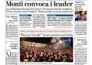 Monti convoca gli altri leader, la vendita di La7 a Cairo, e l'incendio della Città della Scienza a Napoli
