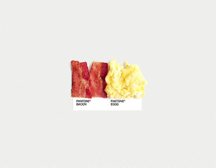 Pantone Pairings è un progetto realizzato dall’illustratore e designer americano David Schwen. Il titolo richiama gli abbinamenti di cibo – pairings, appunto – e l’azienda Pantone, che nel tempo è diventata sinonimo di una delle classificazioni di colore più conosciute e importanti al mondo. Schwen trasforma alimenti spesso accostati insieme nel piatto in quadratini colorati, come nei cataloghi Pantone: pancetta e bacon, carote e piselli, latte e biscotti, sale e pepe. L’idea alla base del progetto nasce dal parallelismo tra l’abbinare i colori e servire cibi che stanno bene insieme.