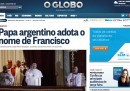 L’elezione del Papa sui siti internazionaliPapa Francesco sulle homepage di tutto il mondo Condividi CondividiFacebookX (Twitter)EmailWhatsappRegala il PostLealtrefotoJorge Mario Bergoglio, 76 anni, argentino, è il nuovo papa della Chiesa cattolica, eletto al quinto scrutinio del Conclave. Ha scelto il nome Francesco. Così la notizia nelle home page dei siti internazionali di tutto il mondo. BBC (Regno Unito) Irish Independent (Irlanda) NBC (USA) Diario De Noticias (Portogallo) El Pais (Spagna) The Atlantic Wire (USA) La Libre (Belgio) Time (USA) The Telegraph (Regno Unito) Excelsior (Messico) O Globo (Brasile) Les Echos (Francia) The Guardian (Regno Unito) CNN (USA) Al Jazeera (Qatar) The Wall Street Journal (USA) The Washington Post (USA) The New York Times (USA) Le Monde (Francia) Die Zeit (Germania) Huffington Post (USA) Mail&Guardian (Sudafrica) Tag: conclave-eletto nuovo papa-Jorge Mario Bergoglio-nuovo papa-papa francesco-papa francesco IMostra i commenti