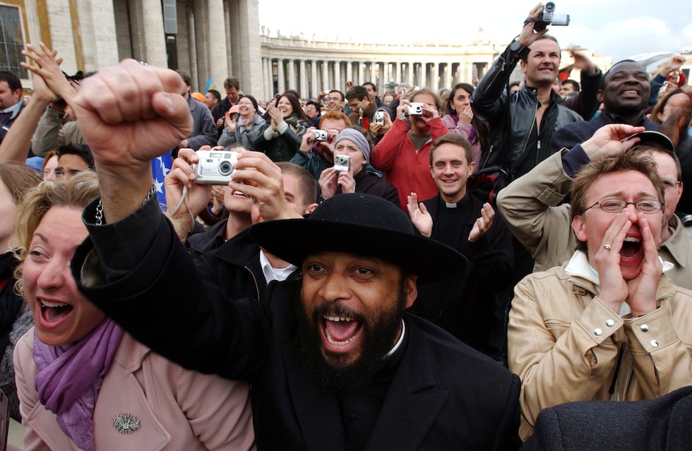 Se poi andiamo a vedere le foto della folla nel momento della proclamazione di papa Benedetto XVI, il 19 aprile 2005, ci rendiamo conto che allora come adesso il desiderio di conservare la fotografia di un momento storico di cui si è stati testimoni era fortissimo: semplicemente non c’erano gli stessi strumenti di oggi per farlo.
