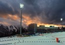 Tra le migliori foto sportive, questa settimana, c’è quella del cielo sopra Sochi, in Russia, che sembra in fiamme: sotto si disputa una gara dei campionati del mondo di biathlon femminile. Poi, i festeggiamenti per il secondo gol di Messi al Milan e il ritorno del curling, con una giovane atleta della nazionale giapponese concentratissima. Ma non è male neanche la gabbia di vetro dove si gioca un incontro di squash e Andrea “il Barone” Lo Cicero mentre saluta i tifosi della nazionale di rugby italiana dopo la sua ultima partita.