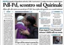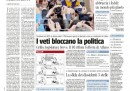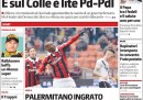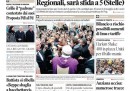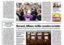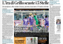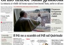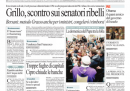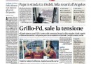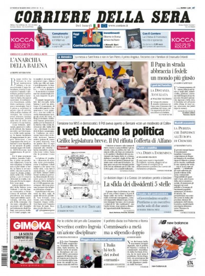 Le principali notizie sui quotidiani di oggi sono la decisione di Beppe Grillo di richiamare all’ordine i senatori del Movimento 5 Stelle che sabato hanno votato per Pietro Grasso, e la prima domenica (col primo Angelus, quindi) di papa Francesco. Fanno eccezione soprattutto il Corriere della Sera, che però cita Grillo in un più generico titolo sull’attualità politica; la Stampa, che apre con una sua intervista a Mario Monti; e il Giornale, indignato per un’espressione usata da Lucia Annunziata mentre intervistava in tv Angelino Alfano.