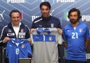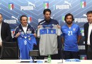 È stata presentata oggi la nuova maglia della nazionale italiana di calcio, realizzata dalla Puma, il cui contratto con la Federazione Italiana Giuoco Calcio (FIGC) andrà avanti fino al 2018. La maglia è stata presentata al Centro Tecnico Federale di Coverciano da Gianluigi Buffon, Andrea Pirlo e da Cesare Prandelli. La maglia sarà indossata per la prima volta nell’amichevole contro il Brasile di giovedì 21 marzo e durante la Confederations Cup 2013 che si giocherà a giugno.