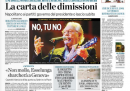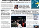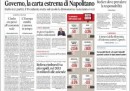 Tutti i giornali di oggi si occupano in apertura della giornata di consultazioni del Presidente della Repubblica per tentare di sbloccare le trattative per la formazione di un nuovo governo, al termine della quale Napolitano ha preso tempo di fronte alle posizioni contrapposte dei vari partiti: le due alternative indicate dai vari giornali sono l’incarico per la formazione di un “governo del presidente” o le dimissioni anticipate di Napolitano, per avere un nuovo Presidente della Repubblica che possa sciogliere le Camere. Su quasi tutte le prime pagine si trovano anche il ricordo di Enzo Jannacci e le immagini della prima via crucis celebrata da Papa Francesco.