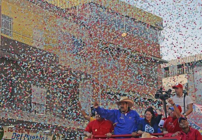 Ieri Capriles ha chiamato i suoi elettori a Caracas per una marcia a cui hanno partecipato più di 350mila persone. Durante il comizio ha riproposto il proprio programma (basato sulla promessa di aumentare i guadagni sulla vendita del petrolio, che poi saranno utilizzati per sviluppare programmi a carattere sociale) e attaccato personalmente il suo avversario politico dicendo che è un “ragazzo pigro” che “non ha mai lavorato”.