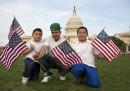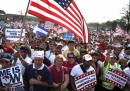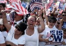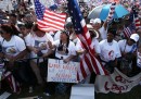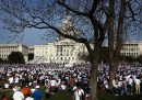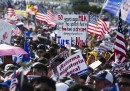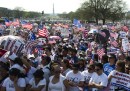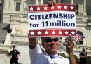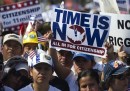 Mercoledì 10 aprile migliaia di persone hanno manifestato a Washington, negli Stati Uniti, per chiedere l’approvazione di una nuova legge che semplifichi le pratiche per ottenere la cittadinanza a circa 11 milioni di immigrati, che vivono e lavorano da anni nel paese nonostante vi siano entrati illegalmente. I manifestanti hanno sfilato lungo il National Mall, l’ampio viale di tre chilometri che si estende dal Lincoln Memorial al Campidoglio, urlando slogan e mostrando cartelli per chiedere al Congresso di portare avanti la legge e non tergiversare.
