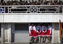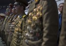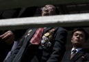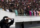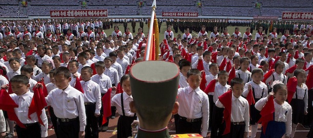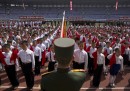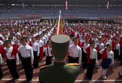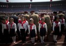 Nello stadio intitolato a Kim Il Sung, a Pyongyang, migliaia di bambini hanno partecipato alla cerimonia di reclutamento nell’Unione dei bambini coreani, l’organizzazione politica giovanile della Corea del Nord. I bambini hanno giurato di studiare duramente e crescere forti per difendere il loro paese. All’evento hanno partecipato anche ex soldati che hanno legato fazzoletti rossi attorno al collo dei bambini.