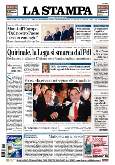 Le prime pagine di venerdì 12 aprile 2013