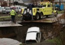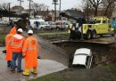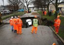 Nella mattinata di giovedì 18 aprile a Chicago (Illinois), si è aperta una voragine in una strada nel quartiere residenziale di South Deering. Tre auto sono finite nel buco che si è creato, e uno dei conducenti è stato ricoverato in ospedale per le ferite riportate. Il buco si è aperto dopo che per tutta la notte c’erano state forti piogge, che avevano costretto le autorità di Chicago a chiudere centinaia di scuole e cancellare più di 300 voli dell’aeroporto cittadino.