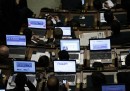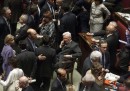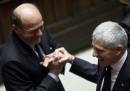 È la seconda giornata di votazioni per l’elezione del nuovo presidente della Repubblica, anche oggi sono previsti due scrutini: le novità rispetto a ieri sono il ritiro della candidatura di Franco Marini, la scelta del PD e di SEL di sostenere Romano Prodi, la decisione di Scelta Civica e (forse) del PdL di votare Annamaria Cancellieri. Le fotografie dalla Camera mostrano, come ieri, molti abbracci di Pier Luigi Bersani: stavolta però non ad Alfano bensì a due deputati di centrosinistra, Tabacci e Berretta, e a Pierferdinando Casini. Le votazioni si possono seguire sul liveblog del Post, e in diretta streaming qui.