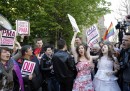 Con 331 voti a favore e 225 contrari, martedì 23 aprile l’Assemblea Nazionale francese ha approvato la legge che legalizza i matrimoni tra persone dello stesso sesso, dopo l’approvazione del 12 aprile scorso da parte del Senato. La legge sul matrimonio gay è considerata la più importante riforma della società effettuata in Francia dal 1981, quando fu abolita la pena di morte. Centinaia di persone a favore del provvedimento hanno festeggiato in molte città del paese, ma non sono mancate anche nuove manifestazioni di protesta organizzate principalmente dai sostenitori dei partiti di destra, che si opponevano da mesi alla nuova legge voluta e promessa nella campagna elettorale dal presidente François Hollande.